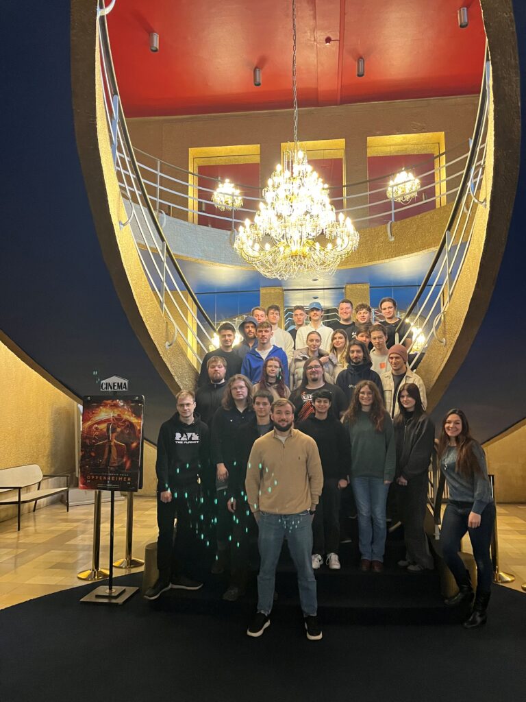 Mit gespannter Erwartung verließ die Klasse E2FI2 heute das Klassenzimmer und verwandelte den Englischunterricht in eine besondere Lernerfahrung im Kino. Als Exkurs aus dem Berufsschulenglisch lief der Film „Oppenheimer“ in der englischen Originalfassung. Das historische Drama von Christopher Nolan war zuvor im Unterricht intensiv inhaltlich und sprachlich vorbereitet worden. Dabei setzten sich die Lernenden bereits mit den historischen Hintergründen sowie zentralen Begriffen und Themen auseinander.